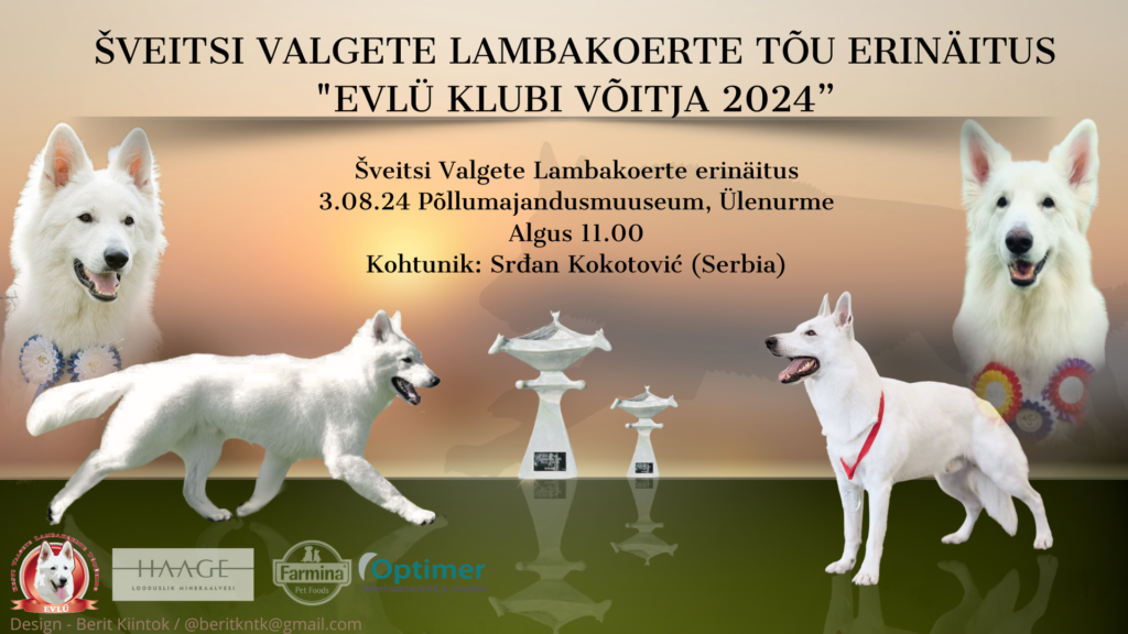 EVLÜ korraldab sertifikaadiõigusega šveisti valgete lambakoerte (FCI 347) tõu erinäitust EVLÜ KLUBI VÕITJA