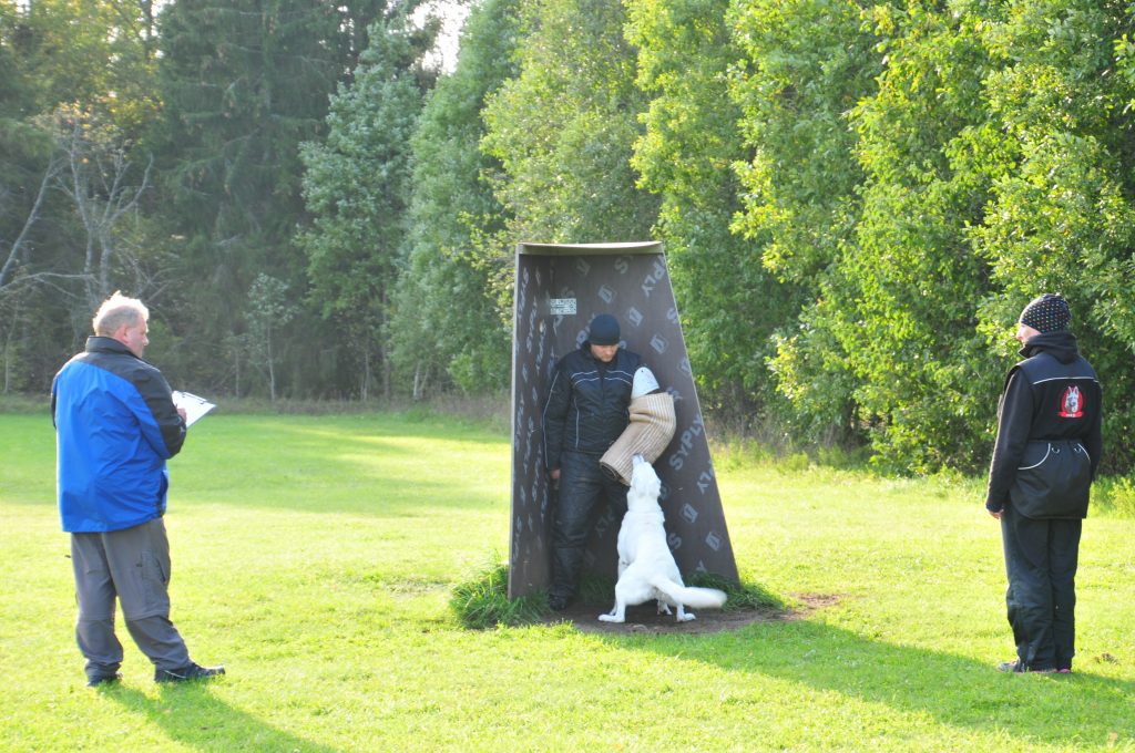 Päev oli pikk ja pingutust nõudev, aga õhtuks oli meil Tari võistlusraamatus sissekanne „IPO1“ sooritatud. Hinded: jälg – võrratu, kuulekus – hea, kaitse – hea, kokku tulemus „HEA“. Kaitsetöös antakse veel ka hinnang koera võitlustahtele (TSB), see on hinnang, mis kirjeldab koera iseloomuomadusi aretusväärtuse hindamiseks ja sellel on kolm hinnet (võrratu, piisav, ebapiisav). Tari sai võitlustahte hindeks „võrratu“. Mul on selliste hinnete üle väga hea meel. Tulemusele lisab veel väärtust teadmine, et asjatundjamate väitel oli kohtunik hindamisel küllaltki range. Mitmel korral päeva jooksul pressis stress end koerajuhtidele kaaslaseks, aga õnneks sai siiski pingetaluvus võitu ja ka koerad pidasid vastu. Julgustavalt mõjusid hea korraldajate toimkond ESLÜ-st, eksamisooritajate kokkuhoidev seltskond ja super varrukamees Janar Klement. Enne eksamit püüdsin kokkuvõtlikult meelde tuletada kõigi õpetussõnu, kellelt olin koolitust sanud: Aarne Väli jälje- ja kuulekustrennid, Janar Klementi ja Tõnis Landi kaitsetrennid, Esta Ratniku, Aivo Oblika ja Urve Lageda loengud, Ari Saari, Vic Wilmsi, Jan Böhmi ja Mia Skogsteri kaitseseminarid. Kõigilt neilt kogutud killukesed olid abiks ja mis seal salata, eks youtube videod olid samuti heaks õppematerjaliks.